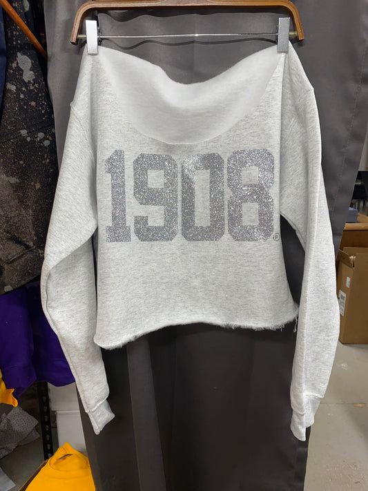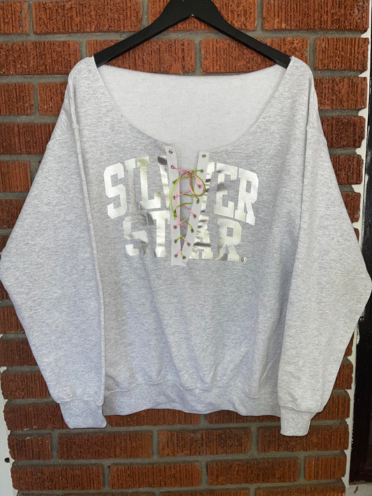 "Stormy Sexy" Deep Charcoal 1908 Stonewash Off-Shoulder Corset Sweatshirt