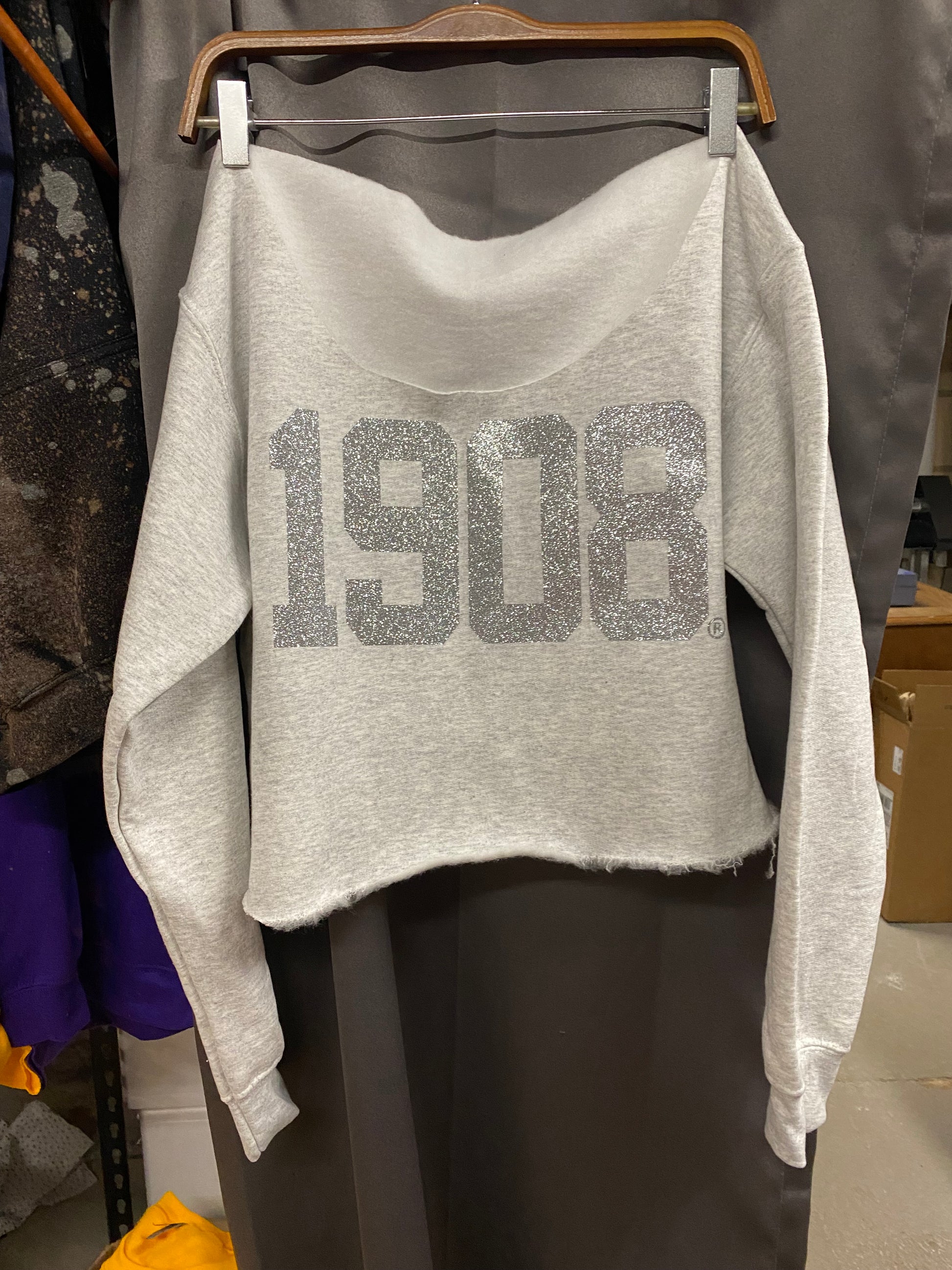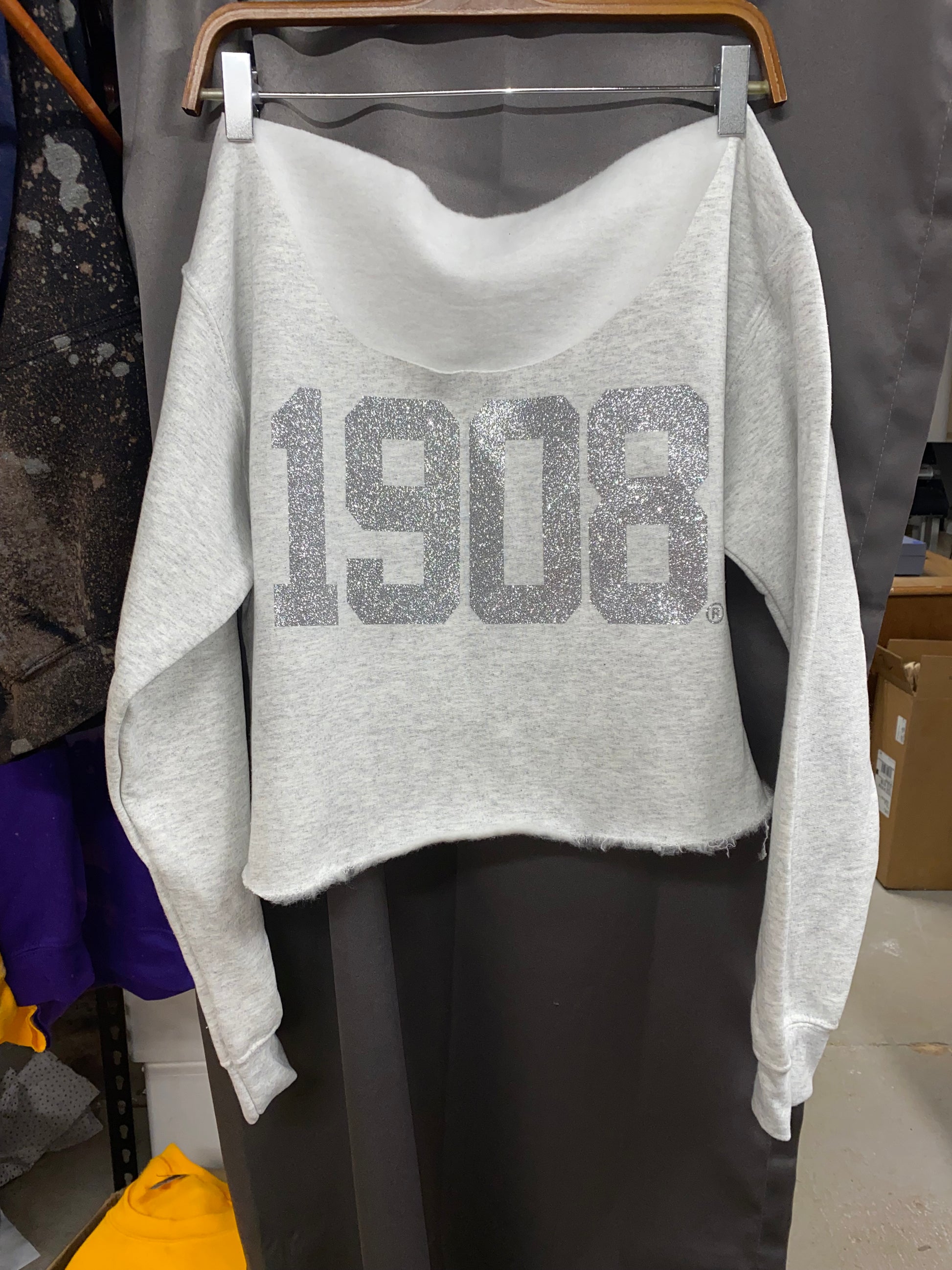 This design features an optional off-the-shoulder neckline with a silver glitter design across the chest. Get it customized in a style that's right for you!