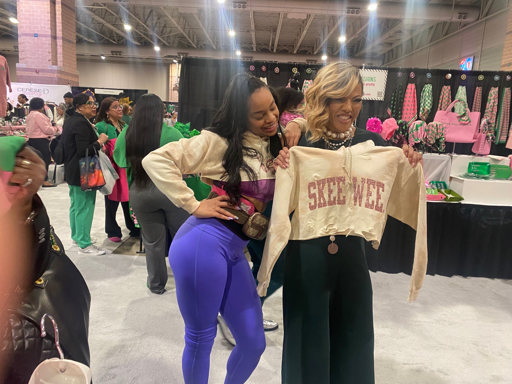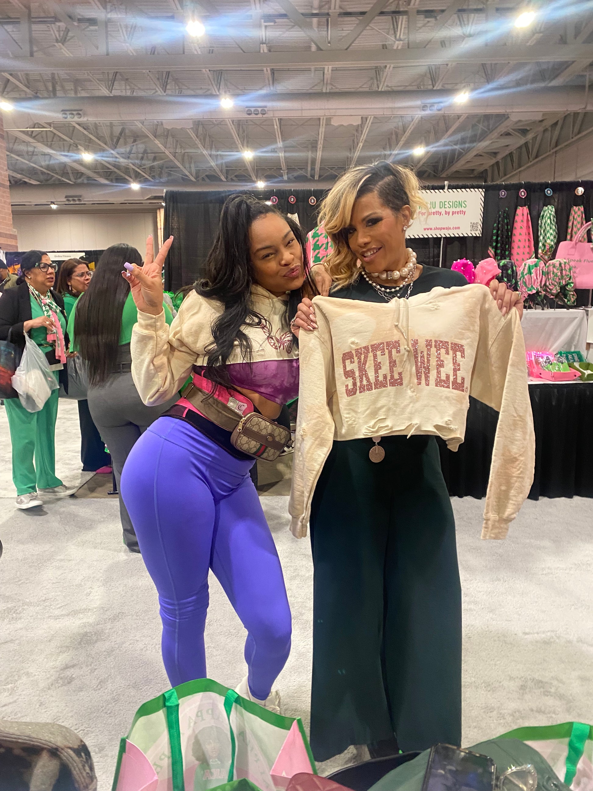This AKA hoodie is hand-bleached and hand-distressed by Cami and her team. It features a hooded fleece, with pocket detail, and our rose gold glitter chest design.