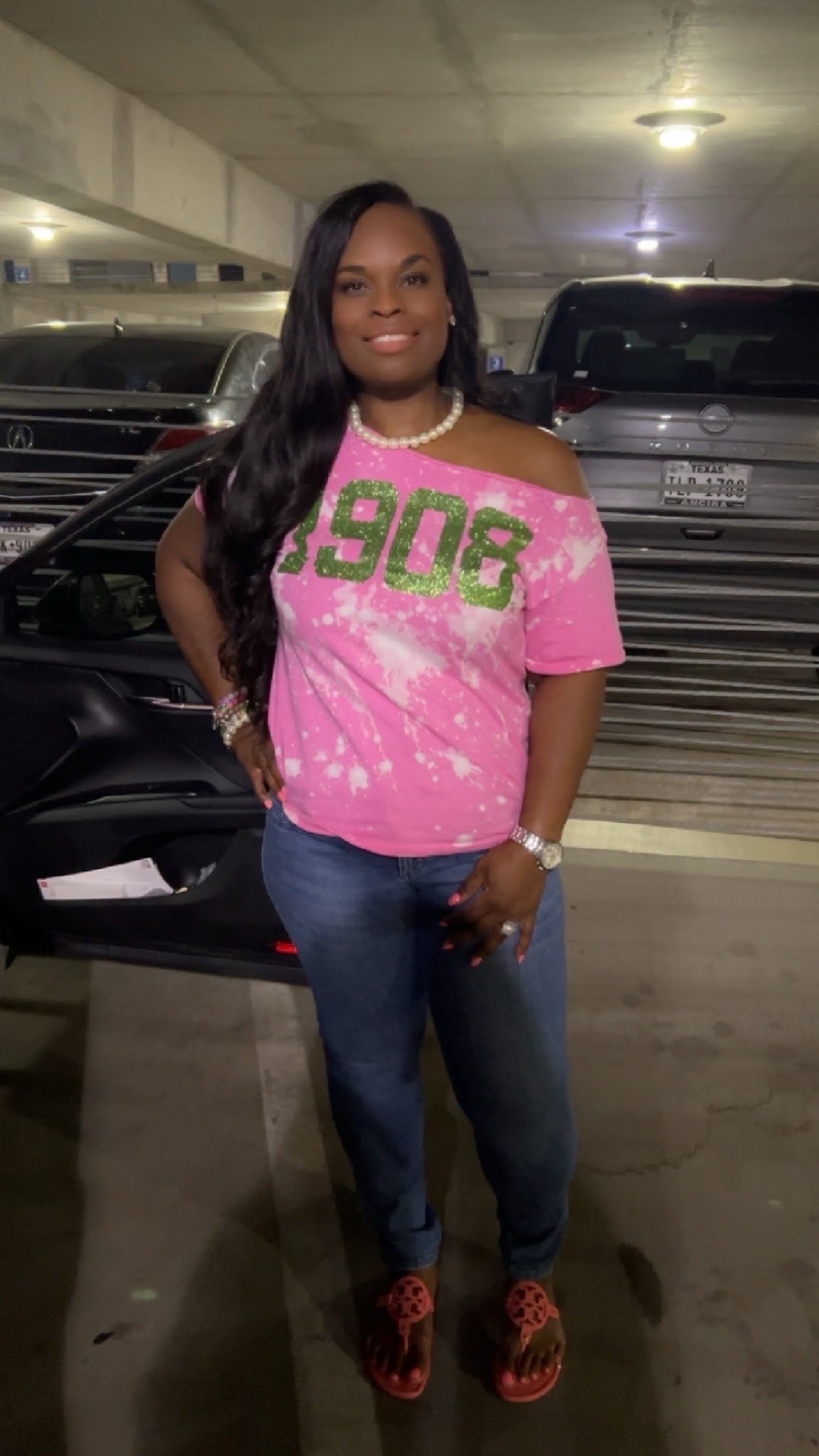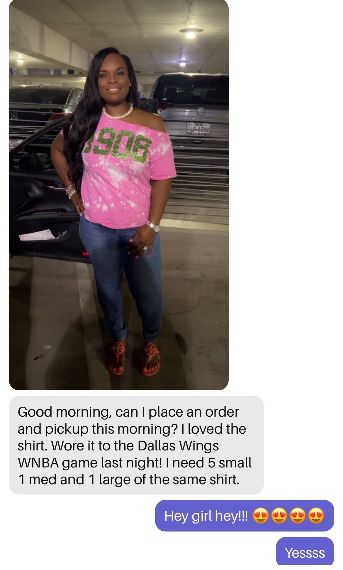 This design is hand-bleached, and hand-distressed by Cami and her team. It features a classic crew or off-shoulder neckline and an Apple Green Glitter '1908' chest design. Get it customized in a style that's right for you!